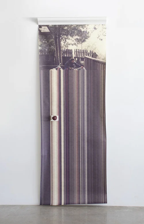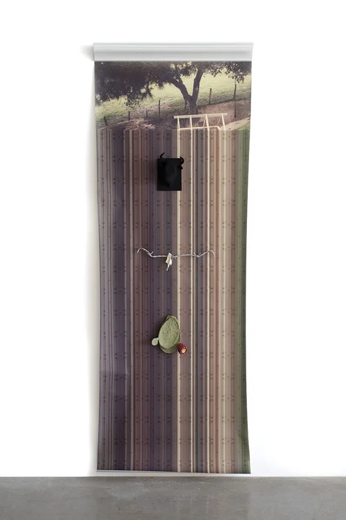 archival pigmented inkjet on washi paper, crown molding, slip-dipped porcelain burnout with underglaze surfacing on glazed ceramic shelf